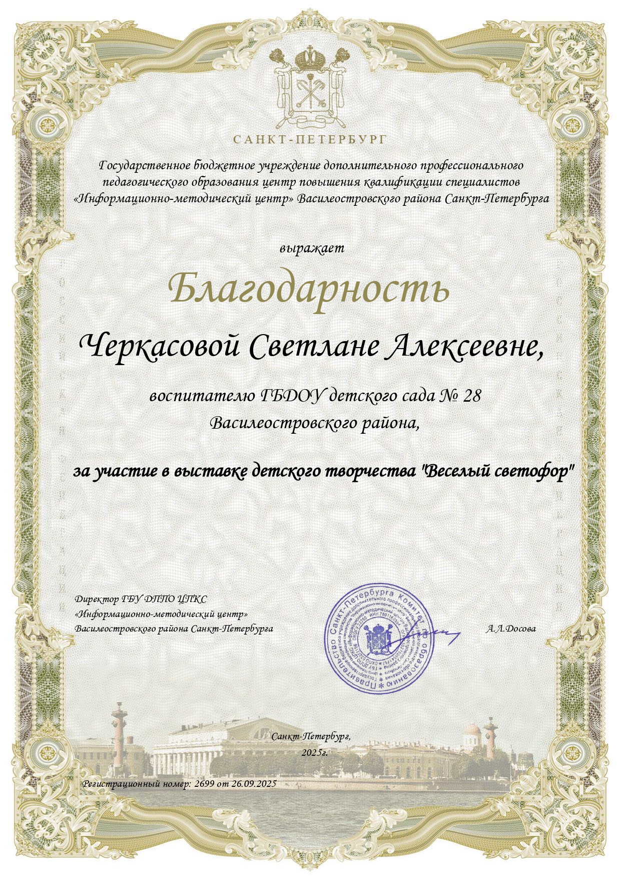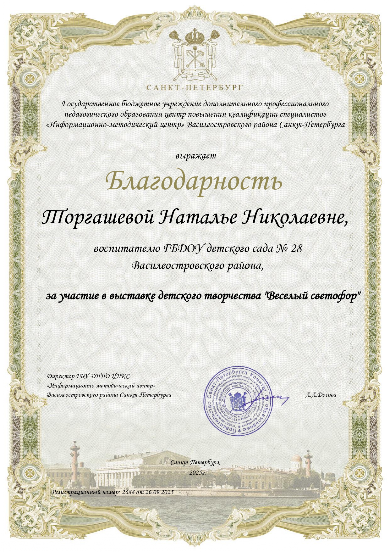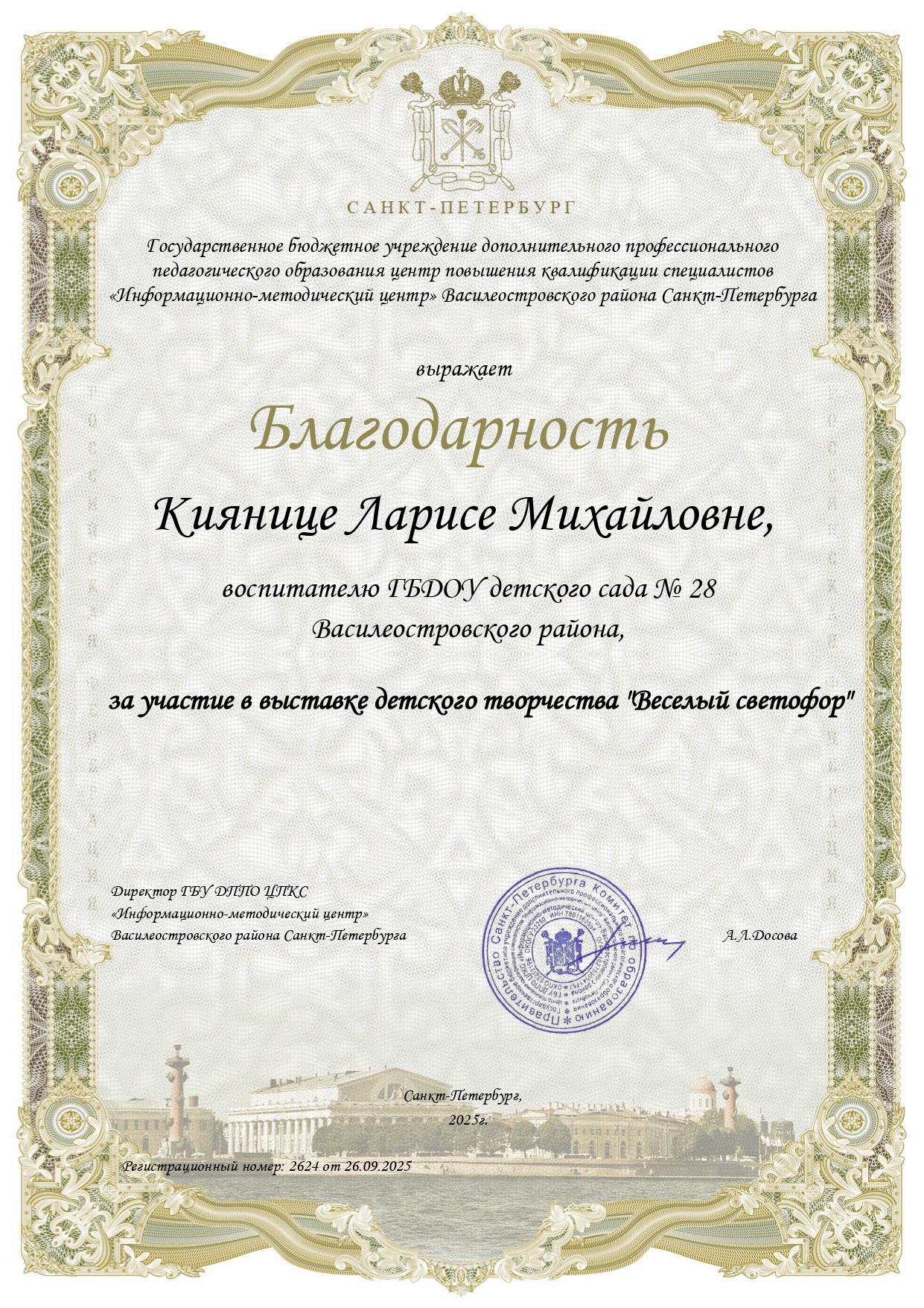 В сентябре 2025г. педагоги и воспитанники стали участниками выставки детского творчества "Веселый светофор".